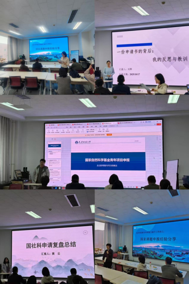 会议由副院长耿伟主持,耿伟介绍了三位青年教师近年来所取得的学术成果,并对三位教师获批国家级课题表示祝贺。梁贺博士结合个人2025年获批国家自然科学基金资助的项目申请书,系统讲解了报告正文的结构安排与各部分内容的撰写要点,并围绕评审意见,分享了对申请书关键内容的体会与思考。在回顾此前未获资助的申报评审意见基础上,总结教训,提出了规避类似问题的建议。黄云博士从选题(关键词确定、敲定题目)、框架(主体框架搭建、技术路线图的重要性等)、完善(各大模块的完善、逻辑衔接、细化、丰富等)、打磨交流(同行评阅、外行评阅)四个方面谈对国社科申请过程的一些复盘和思考。刘烨博士以“一份申请书的背后:我的反思与教训”为主题,分享了国社科青年项目申请的经验及申请书撰写过程中对诸多“踩坑”与“误区”的复盘。结合在数字经济与全球供应链领域的前期研究,重点从“选题宽泛、聚焦不足”、技术路线图“想当然”等申请书撰写中的具体问题,详细从选题构思、技术路线图具象化修正、申报书撰写细节、项目申请中心态成长四部分内容进行了分享。经济学院院长齐俊妍分别就三位老师的讲解内容进行了总结,鼓励老师们注重前期积累,明确研究方向,持续深入研究。