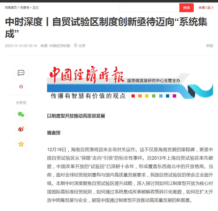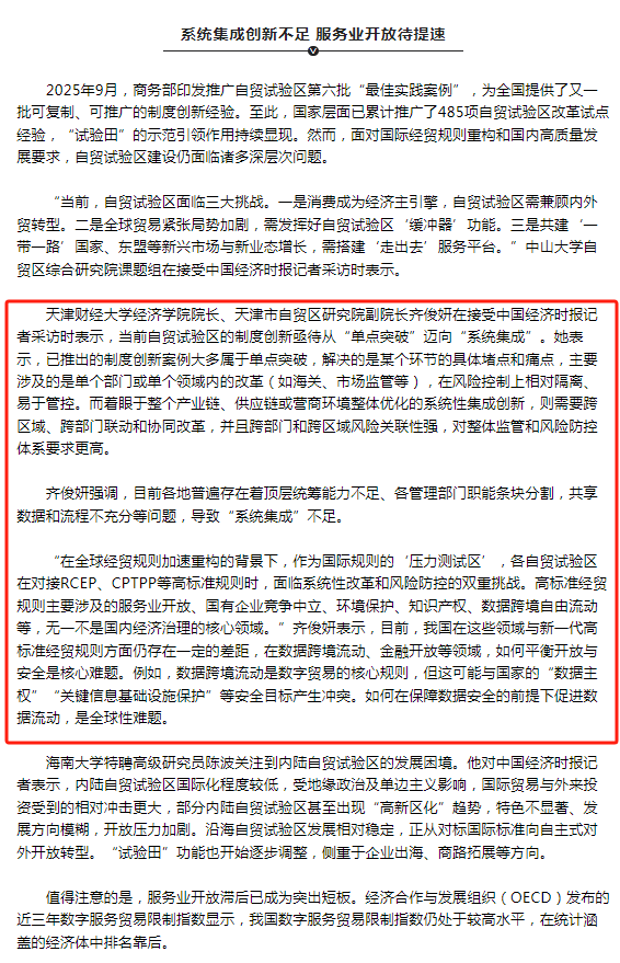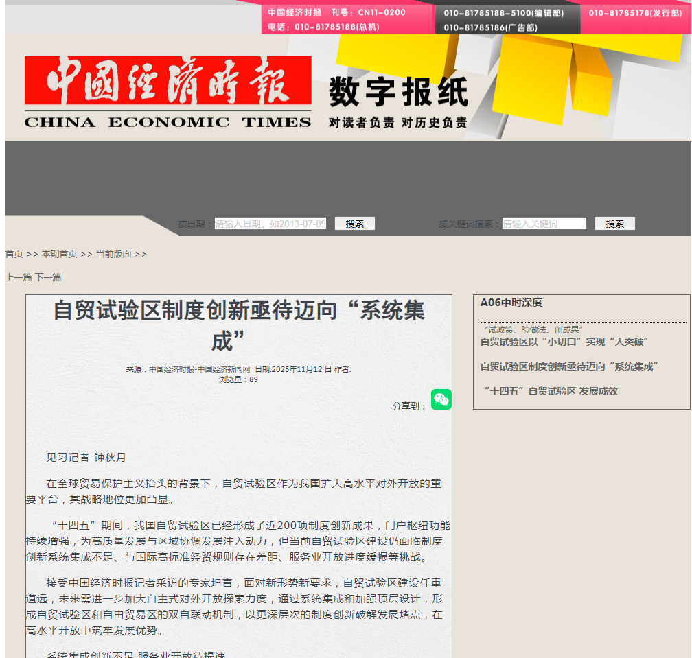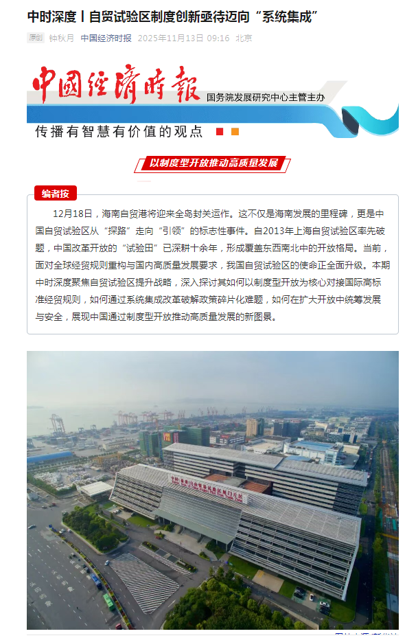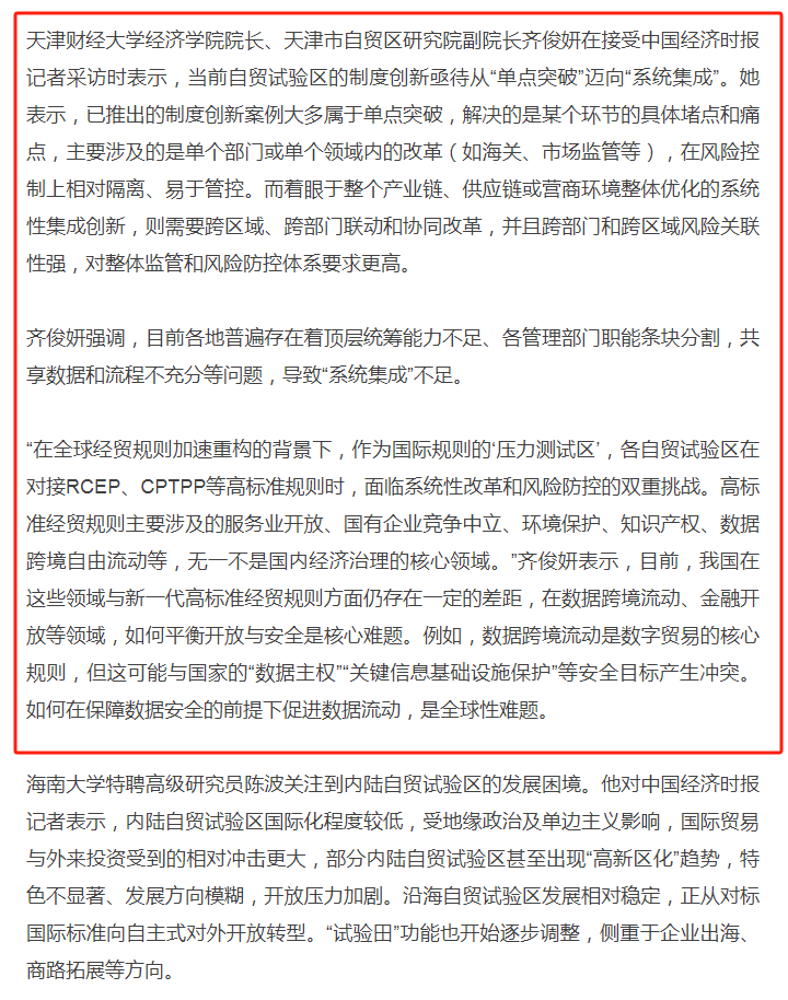 《中国经济时报》采访我校经济学院齐俊妍教授探讨自贸试验区提升战略