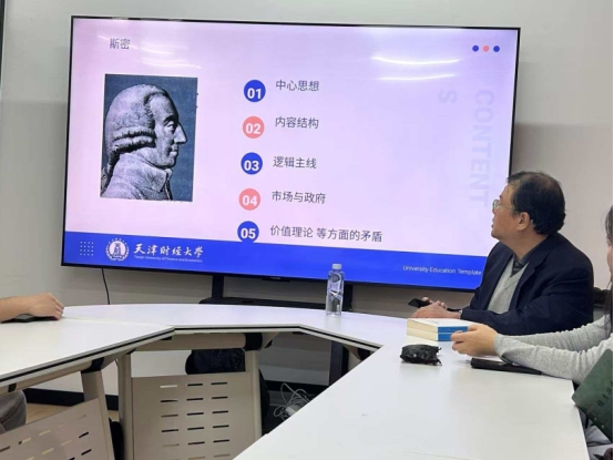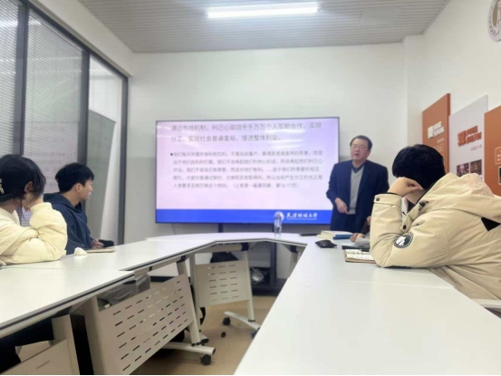 11月28日,经济学院徐尚老师来到一站式社区学生委员会办公室,带领同学们深入研读了《国富论》一书,带领同学们走入斯密构建的宏大理论世界,从财富源于劳动,引出劳动效率与分工,再到合作、利己心及市场机制,阐述市场达最优的逻辑。揭示了个人追求如何汇聚成推动社会前进的洪流,探讨了市场自由与国家职能之间的经典关系,引导同学们思考这些基本原理在当代经济发展中的深刻回响。