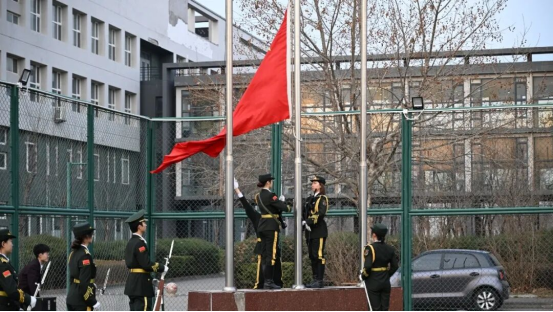 天财国旗护卫队迈着铿锵有力的步伐,护送五星红旗庄严入场。伴随着雄壮的《义勇军进行曲》,鲜艳的五星红旗冉冉升起,全场师生肃立注目,心中激荡着对革命先辈的崇高敬意与对伟大祖国的深情热爱。那一刻,红旗不仅飘扬在空中,更飘扬在每一个经济学子的心中。