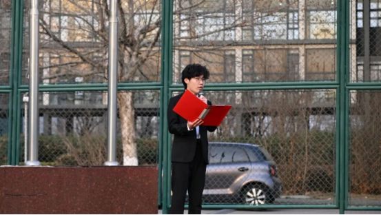 升旗仪式后,经济2502班王志喜同学作为“薪火传承人”代表发言。他结合自身成长经历,讲述了他眼中的长征精神与沂蒙精神。在寒假期间他走进红嫂故居担任志愿讲解员,用实际行动讲述红色故事、传递信仰力量。他号召同学们:将红色精神融入专业学习,把青春理想融入国家发展,在“十五五”新征程上奋勇争先,书写无愧于时代的青春答卷。