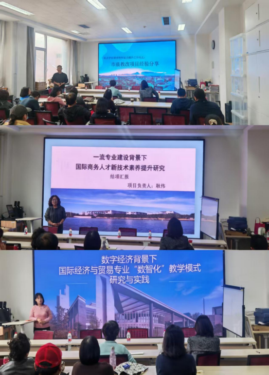 近日,市教委发布关于公布天津市普通高等学校本科教学质量与教学改革研究计划项目结题验收结果的通知,经济学院齐俊妍教授主持的《数字经济背景下国际经济与贸易专业“数智化”教学模式的研究与实践》和耿伟教授主持的《一流专业建设背景下国际商务人才新技术素养提升研究》两项市级教改项目顺利通过验收。其中《数字经济背景下国际经济与贸易专业“数智化”教学模式的研究与实践》凭借突出的实践成效获评市级“优秀”教改项目。经济学院于2025年11月7日举办市级教改经验分享会,项目团队详细拆解实践路径与成果,为全院教学改革提供了鲜活范本。院领导及青年教师参加本次会议,会议由教学院长马红瀚主持。