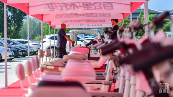 2025年7月11日,山东潍坊,消费者在“消费品以旧换新进社区、进乡村、进企事业单位”活动现场选购电动自行车。(图/视觉中国)