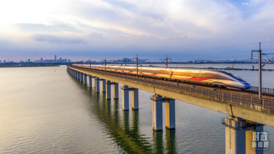 飞驰在京沪高铁上的列车。(图/视觉中国)