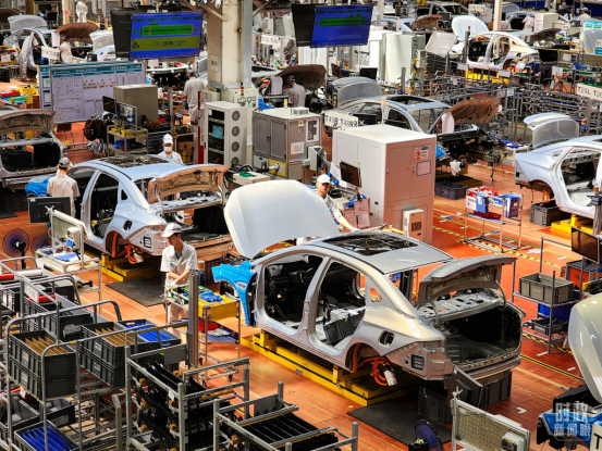 国内一家车企制造车间的新能源汽车生产线。(图/视觉中国)
