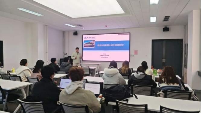 系列学术活动的第三期于3月20日在N8-209顺利举办,邀请任奕达博士作题为“数据如何重塑全球价值链韧性?”的讲座。讲座开始前,经济学院院长齐俊妍教授向参加活动的研究生介绍了学院研究生“丰翼”学术论坛的目标和活动方式,建议研究生积极参加活动,与演讲者开展深入交流。